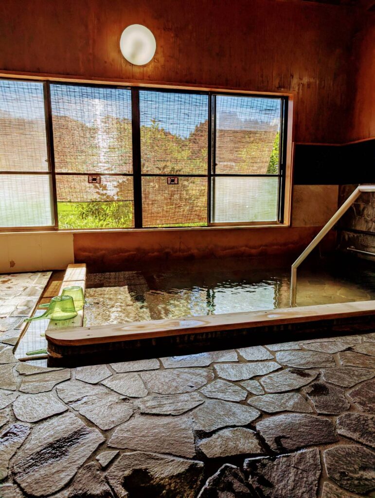 施設は、山間の田んぼに囲まれていてすぐ横には川が流れている秘湯です。