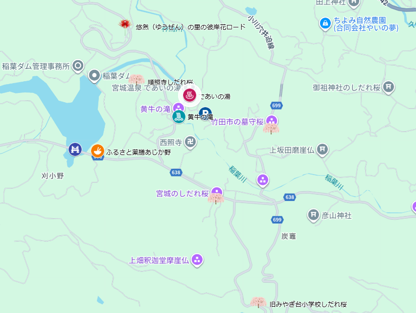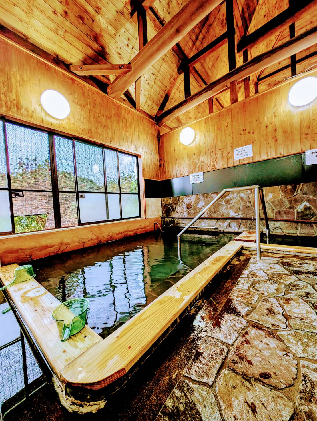 宮城温泉 であいの湯は、古くから地元の人々に利用されている掛け流しの温泉です。泉質は炭酸水素塩泉に非常に近い単純泉です。お湯はトロリとした感触で、湯上がりの肌がしっとりとなることから美人の湯として親しまれています。